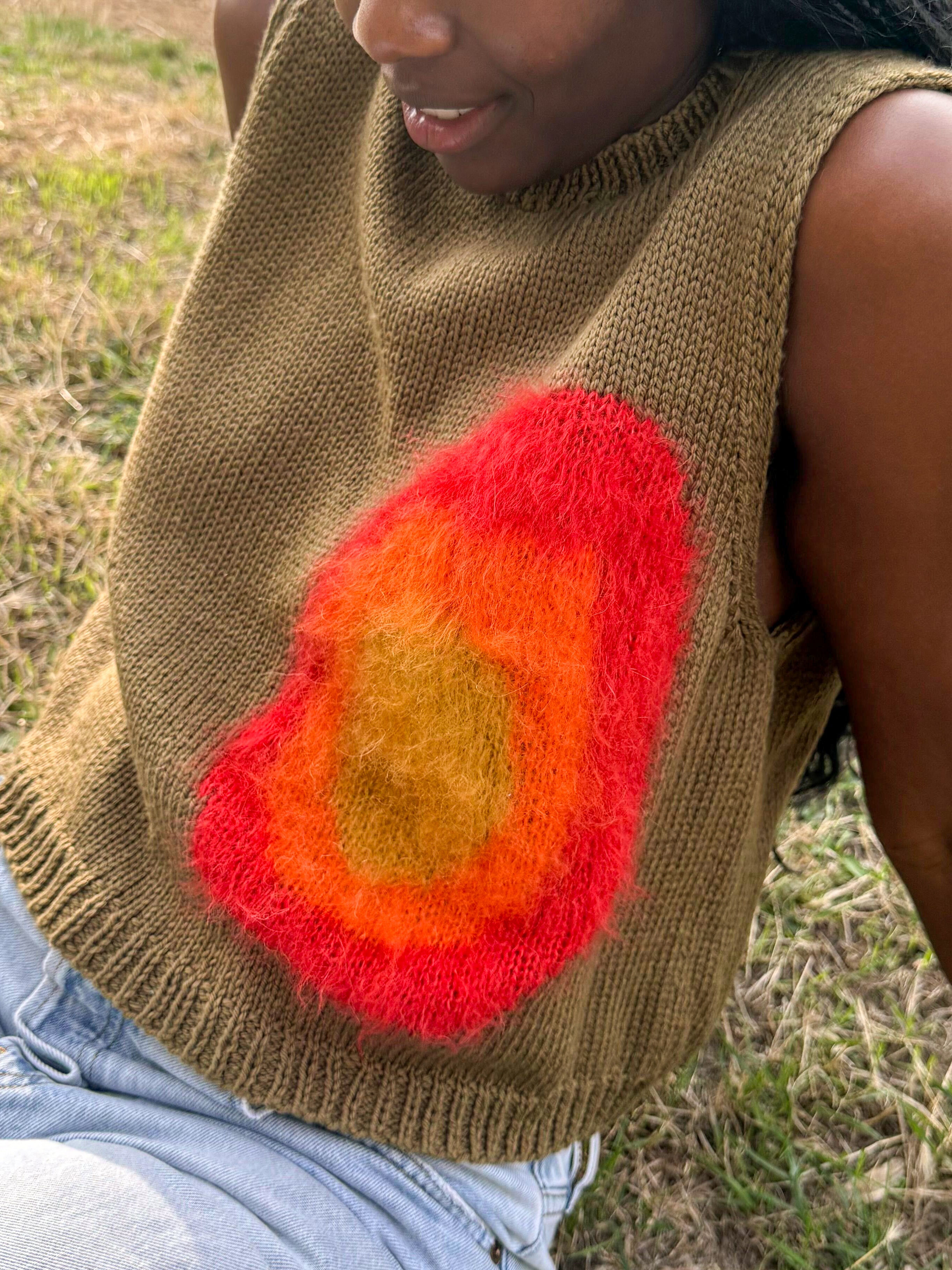 Worked in smooth merino with a brushed mohair accent, the Oh Tank is knit from the bottom up in two pieces, with a slightly cropped fit, clean edges, and a high neckline that’s picked up and finished after seaming.